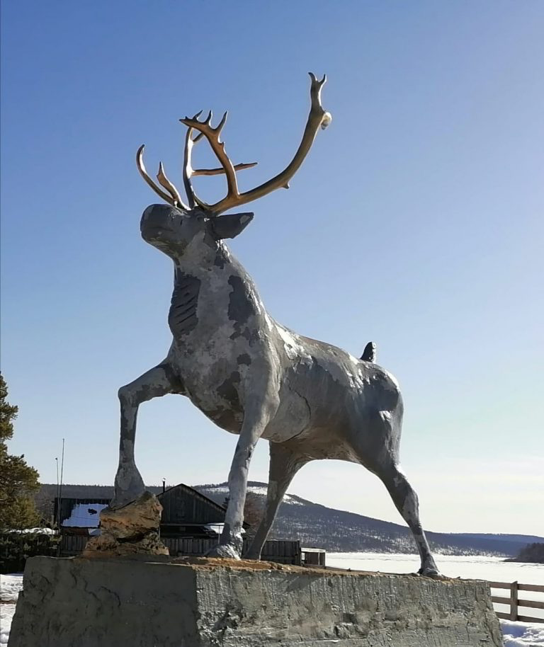 На фото памятник в селе Хатыстыр. Олицетворяет народ эвенков – благородный и беззащитный.