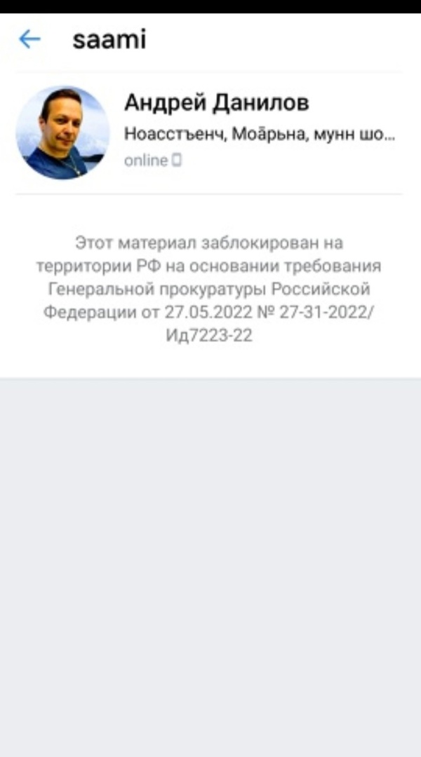 28 мая Андрей Данилов опубликовал в своем Фейсбуке следующий пост: “Моя страничка Вконтакте заблокирована по требованию Генеральной прокуратуры РФ от 27 мая 2022 года 27-31=2022/7223-22. С vpn смотрится.