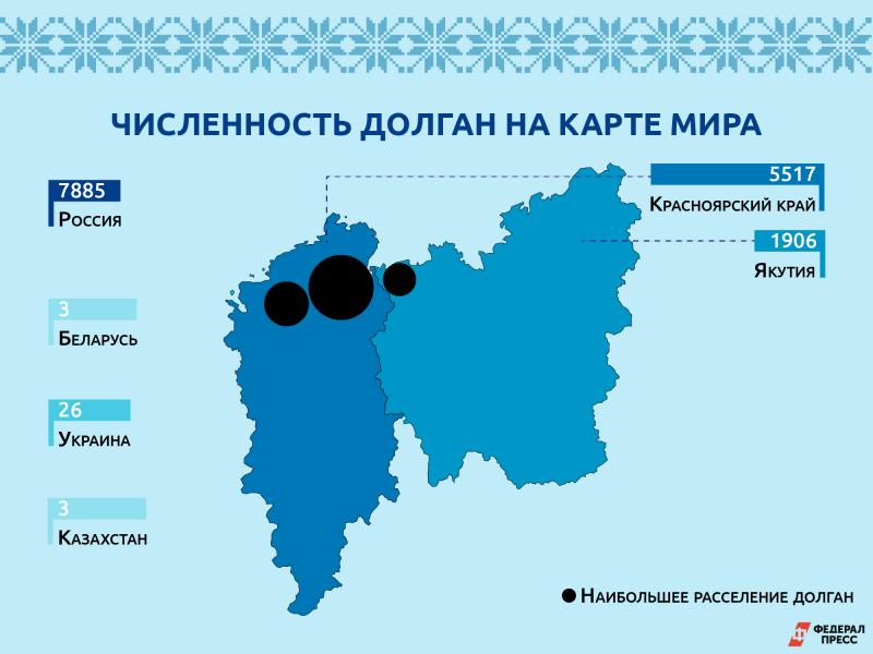 Долганы – коренной северный народ. Основная часть его представителей живет на Таймыре (Красноярский край) по берегам рек Хета и Хатанга. Еще некоторое количество – в Анабарском улусе Якутии. Согласно данным переписи населения 2010 года, общая их численность составляла 7885 человек, из которых 5816 – в Красноярском крае. Больше все их было в городе Дудинка – административном центре Таймыра.