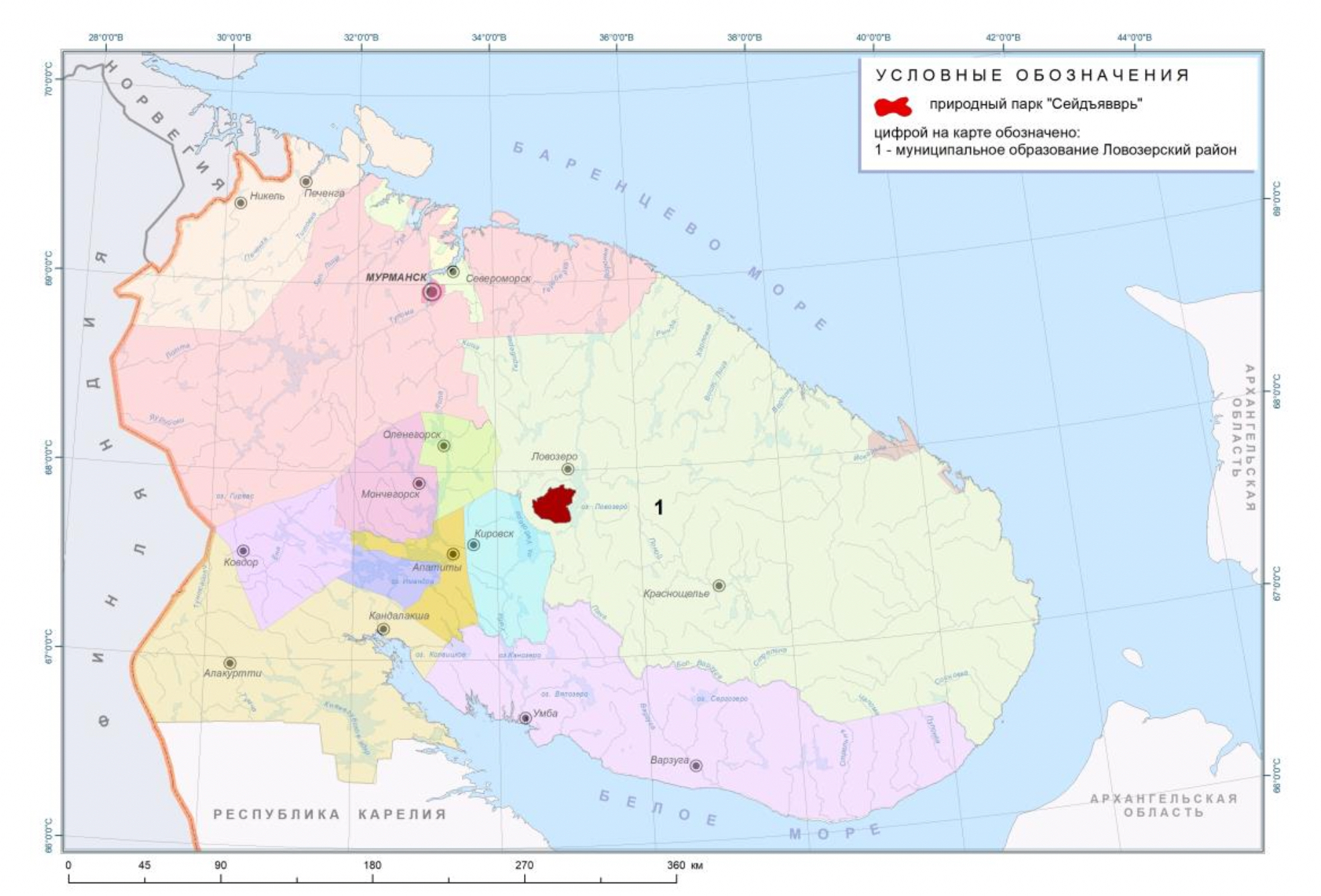 Рис. 1 Карта планируемого природного парка “Сейдъяврь”. Источник – ИППЭС КНЦ РАН.