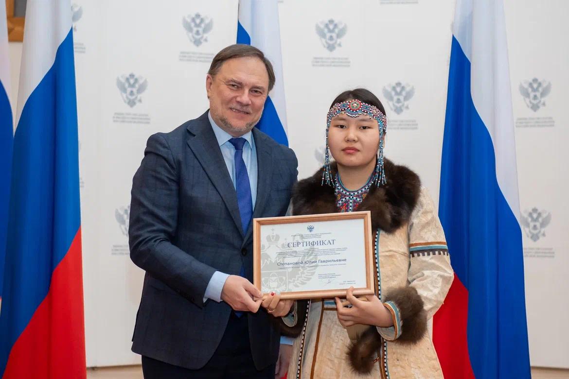 — Для меня самым главным плюсом является то, что могу внести собственный вклад в развитие моего народа. Ведь когда я свободно заговорю на своем родном языке, это уже будет одним большим плюсом — на одного человека увеличится число владеющих. Опытом и знаниями могу поделиться со своими сверстниками, что уже поможет в продвижении языка. Думаю так. А стипендия явилась первым финансовым поощрением моей деятельности, здорово что стали оказывать внимание активным студентам. Было бы еще лучше, если бы увеличили квоты, ведь по всей России столько много талантливых и инициативных студентов из числа КМНС, — считает она.