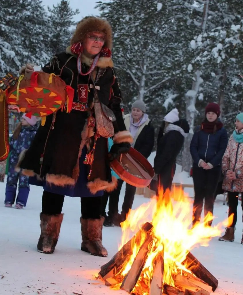 🔥 Изюминкой мероприятия стал добрый обряд «Костер единения». С большим энтузиазмом участники гулянья встретили саамского нойда Надежду Фенину, которая провела обряд исполнения желаний. Зажигать огонь в саамские праздники считается древней традицией. Желания, загаданные в этот день по словам нойда, должны исполниться.