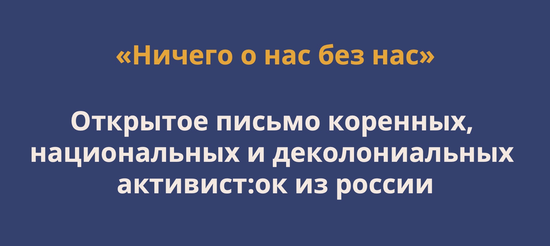 От лица коренных, национальных и солидарных с нами деколониальных активист:ок из россии МЫ ТРЕБУЕМ, чтобы любые публичные разговоры о будущем коренных народов и национальных республик проводились только с участием представитель:ниц этих народов и республик.