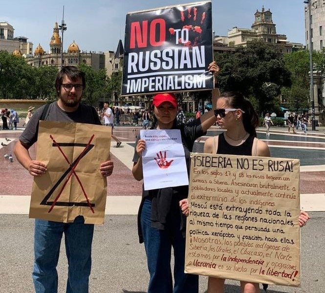Пикет против российского империализма провели в испанском городе Барселона представители коренных народов РФ. Они выступают за независимость и суверенитет. Две девушки и мужчина вышли на улицу с плакатами «Нет российскому империализму», «Сибирь – не Россия», а также с перечеркнутой буквой Z. На одном из плакатов рассказывалось, что русские пришли в Сибирь в 17 – 18 веках с оружием и убивали коренное население. В наше время Москва продолжает вытягивать из регионов ресурсы, при этом проводит ксенофобную и фашистскую политику по отношению к местному населению.