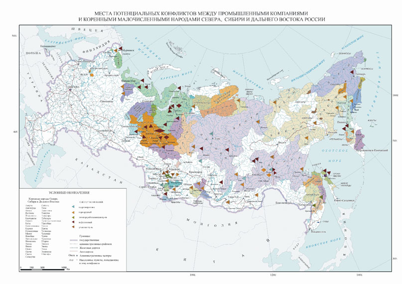 - Места потенциальных конфликтов между промышленными компаниями и коренными малочисленными народами Севера, Сибири и Дальнего Востока Российской Федерации. Москва, 2013