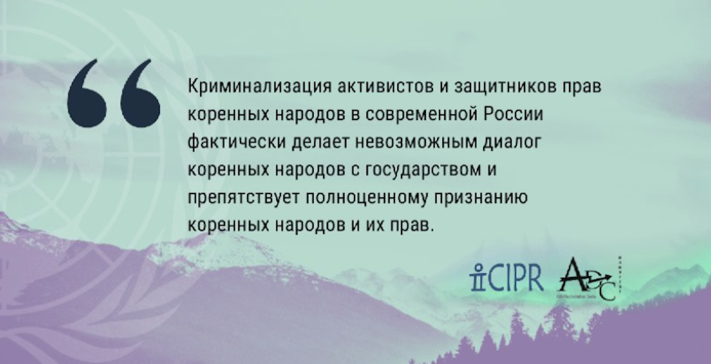 Отвечая на вопросы, поставленные Спецдокладчиком по этим двум темам, АДЦ “Мемориал” и ICIPR обращают внимание в том числе на то, что криминализация активистов и защитников прав коренных народов в современной России фактически делает невозможным диалог коренных народов с государством и препятствует полноценному признанию коренных народов и их прав.
